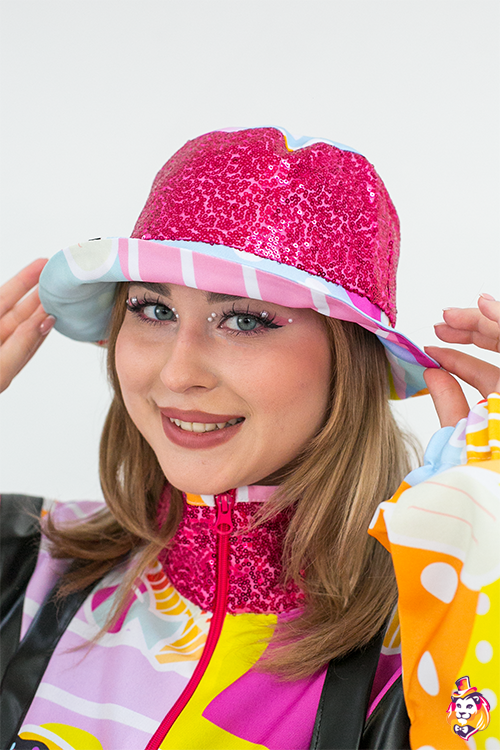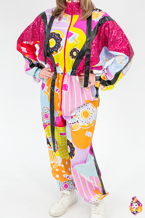 Комплектация:Комбинезон из габардина с полноцветной печатью и пайеточными вставками, панамка в цвет комбинезона. |