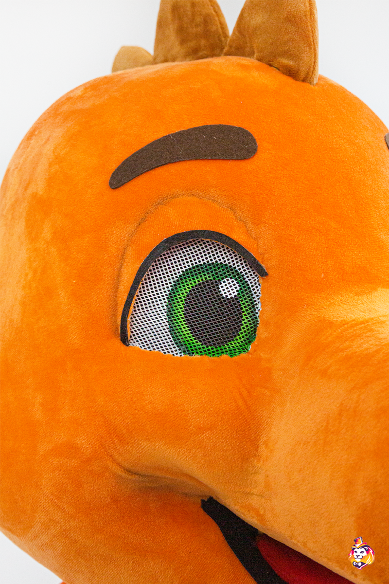 Комплектация:Голова - поролоновый каркас, обтянутый тканью; смотровая область во рту; доп. вентиляционное отверстие в глазах. Туловище - проработанный комбинезон, футболка, перчатки, обувь (поролоновый каркас, обтянутый тканью, на полиуретановой подошве) |