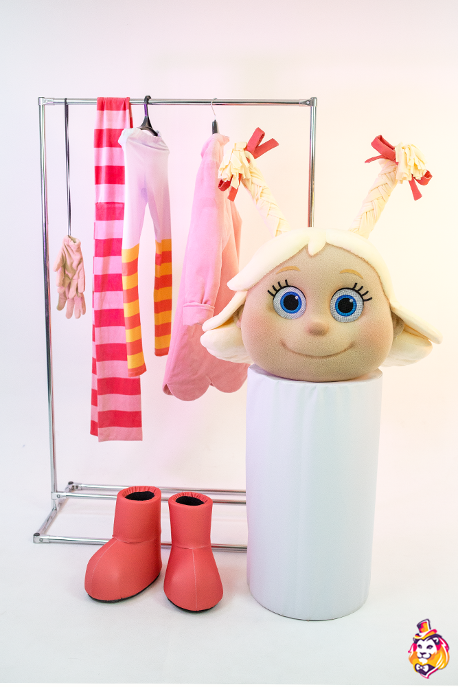 Комплектация:Голова - поролоновый каркас, обтянутый тканью; смотровая область в глазах; доп. вентиляционного отверстия нет. Одежда - платье, лосины, шарф. Пара перчаток, пара обуви (поролоновый каркас, обтянутый тканью, на полиуретановой подошве) |