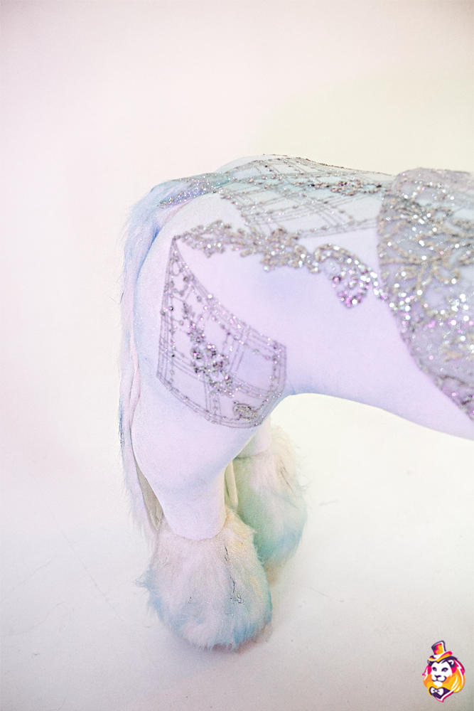 Комплектация:Голова - поролоновый каркас, обтянутый тканью; смотровая область в шее, меховая грива. Туловище - комбинезон, кружевной жилет, задняя часть куклы на регулируемых стропах. Пара перчаток, пара обуви (поролоновый каркас, обтянутый тканью, на полиуретановой подошве) |