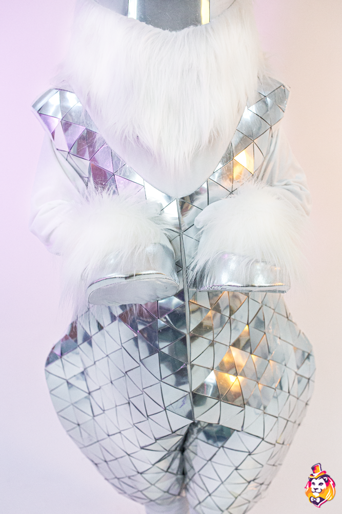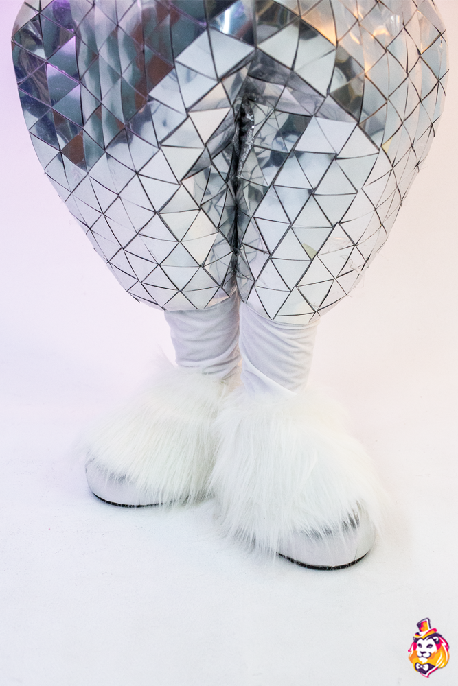 Комплектация:Голова - поролоновый каркас, обтянутый флисом и зеркальными элементами, смотровая область в шее, доп.вентиляционного отверстия нет. Туловище - водолазка и штаны, объемный комбинезон, обтянутый флисом и зеркальными элементами, пара копыт, пара обуви (поролоновый каркас, обтянутый тканью, на полиуретановой подошве). |