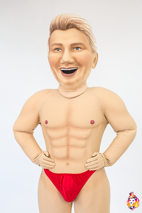 Комплектация:Голова - 3D-маска, обтянутая бифлексом, анатомический шлем внутри, смотровая область во рту, доп.вентиляционных отверстий нет, искусственные волосы. Тело с проработанными анатомическими особенностями - мышечная система; нижнее белье (трусики), пара перчаток из бифлекса. |